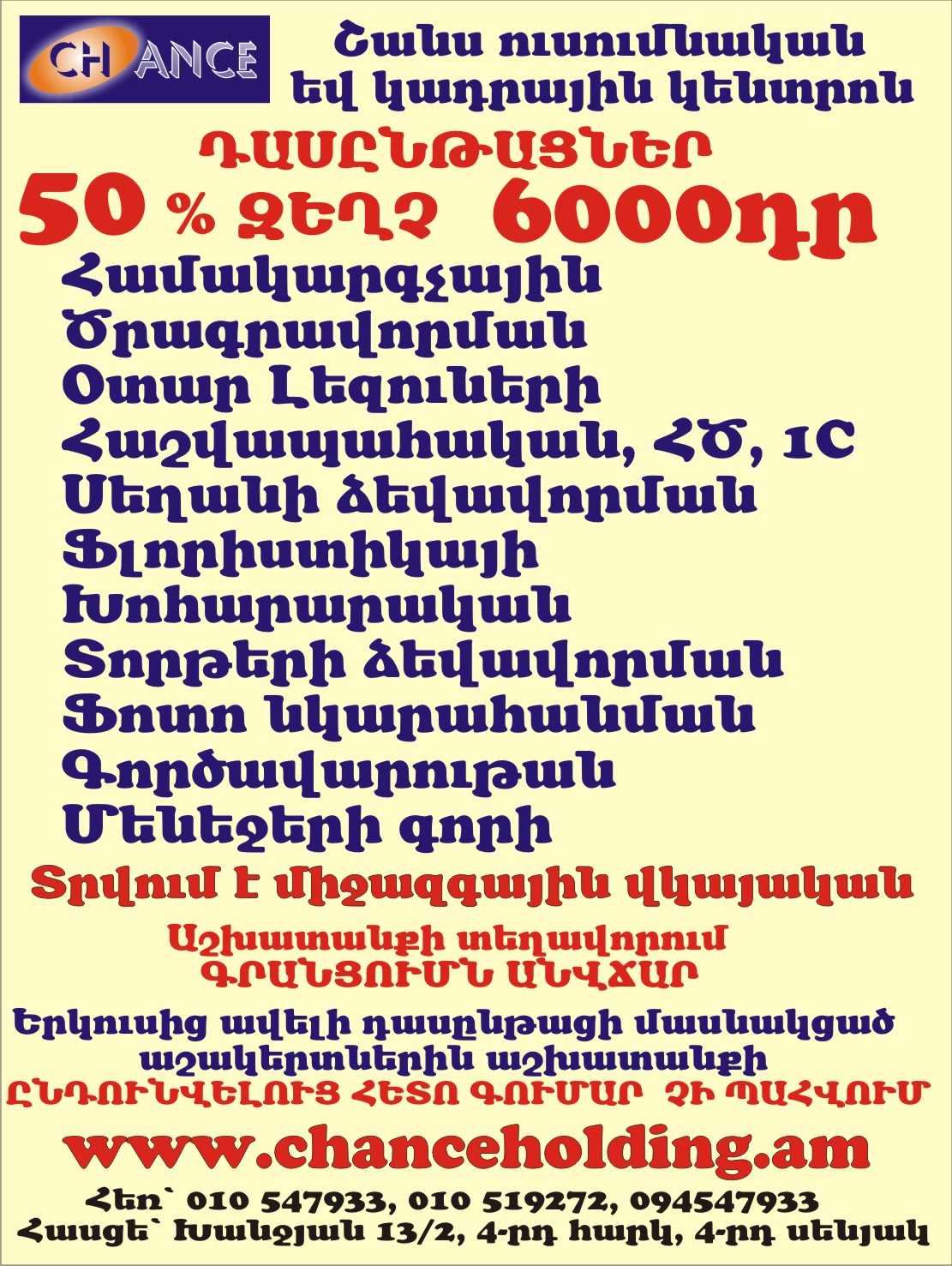 Դասընթացին մասնակցելու համար զանգահարեք` 010-51-92-72 | 094-54-79-33 | 091-54-79-33| 010-54-79-33